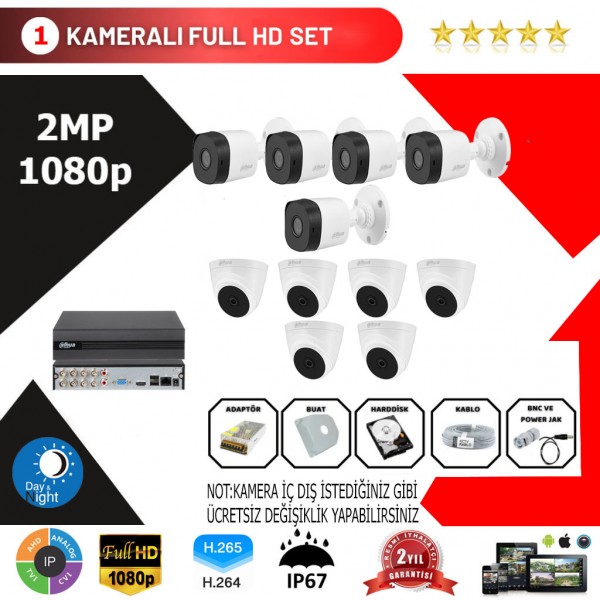 Dahua 10'lu Set 2Mp 1080p Hd Kamera Sistemi