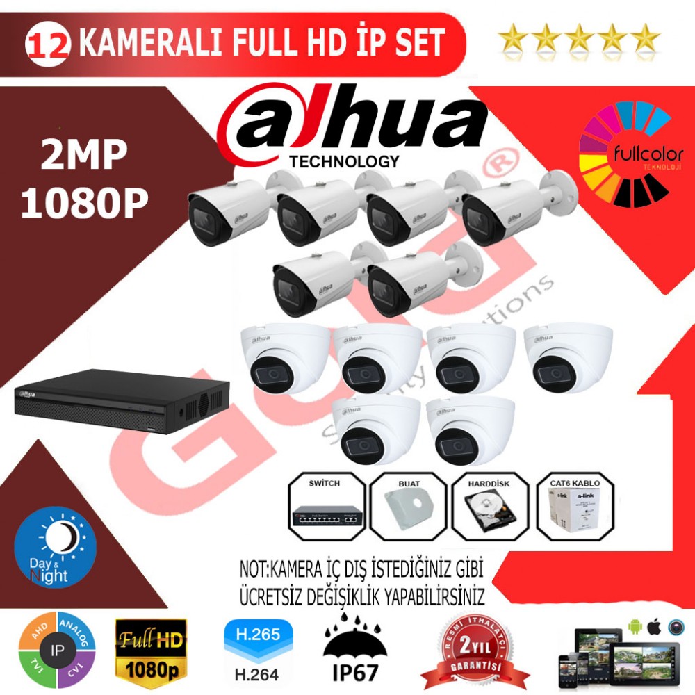Dahua 12'li 2MP 1080P İP Kamera Seti DH12-IP-SET