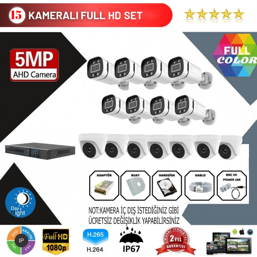GOLD 15'Lı Kamera Seti 5MP Gece Görüşlü Full Color Serisi GE15-AHD-SET5mp