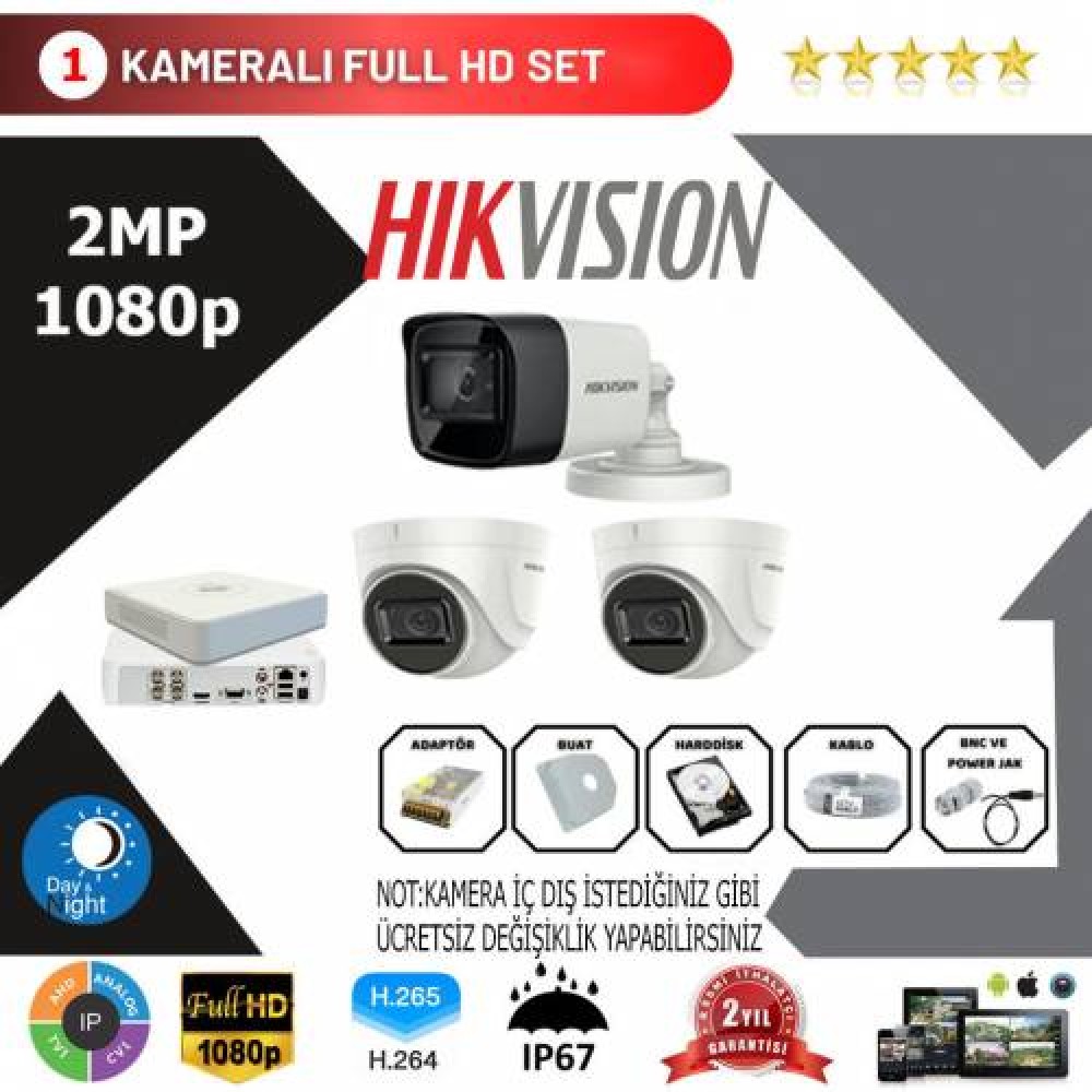 Hikvision 3'lü Set 2 Mp 1080p Hd Kamera Sistemi HK03HDSET