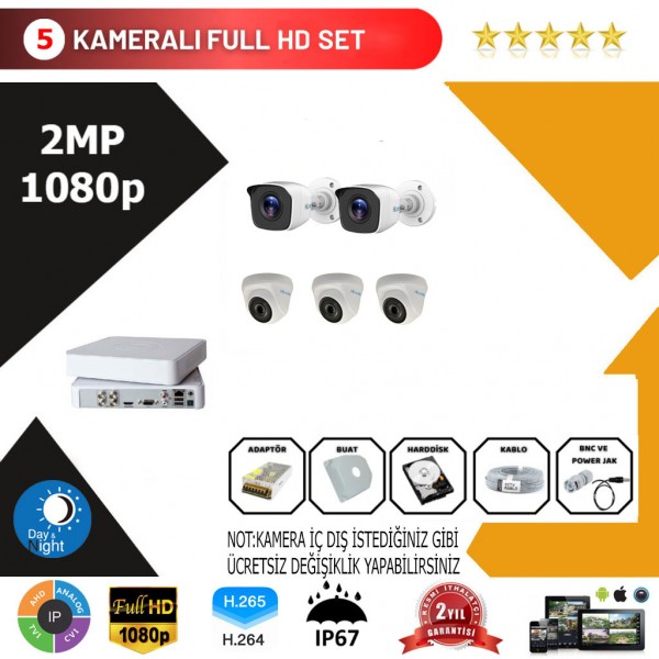 Hilook 5'li Set 2Mp 1080p Hd Kamera Sistemi…