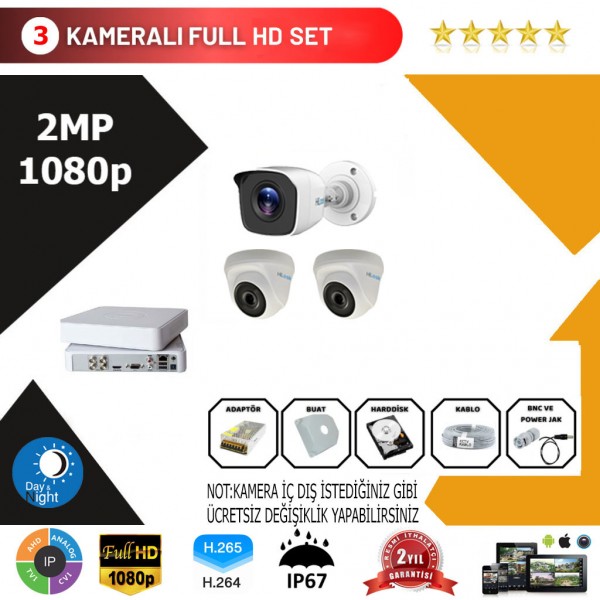 Hilook 3'lü Set 2Mp 1080p Hd Kamera Sistemi…