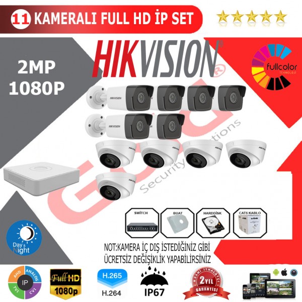 Hikvision 11'li 2MP 1080P İP Kamera Seti…